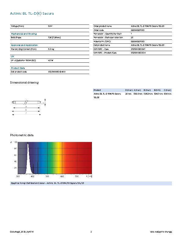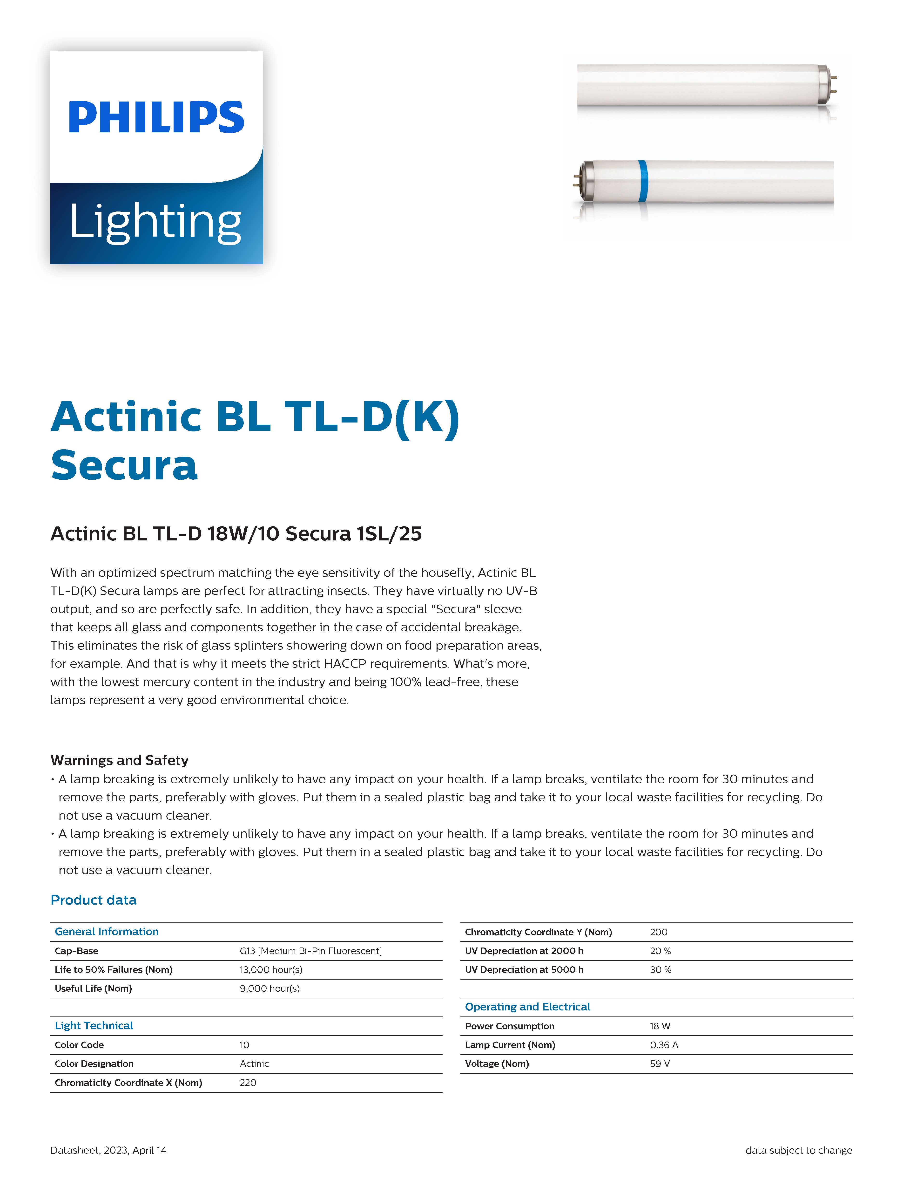 หลอดล่อแมลง Actinic BL TL-D 18W/10 Secura 1SL/25 PHILIPS