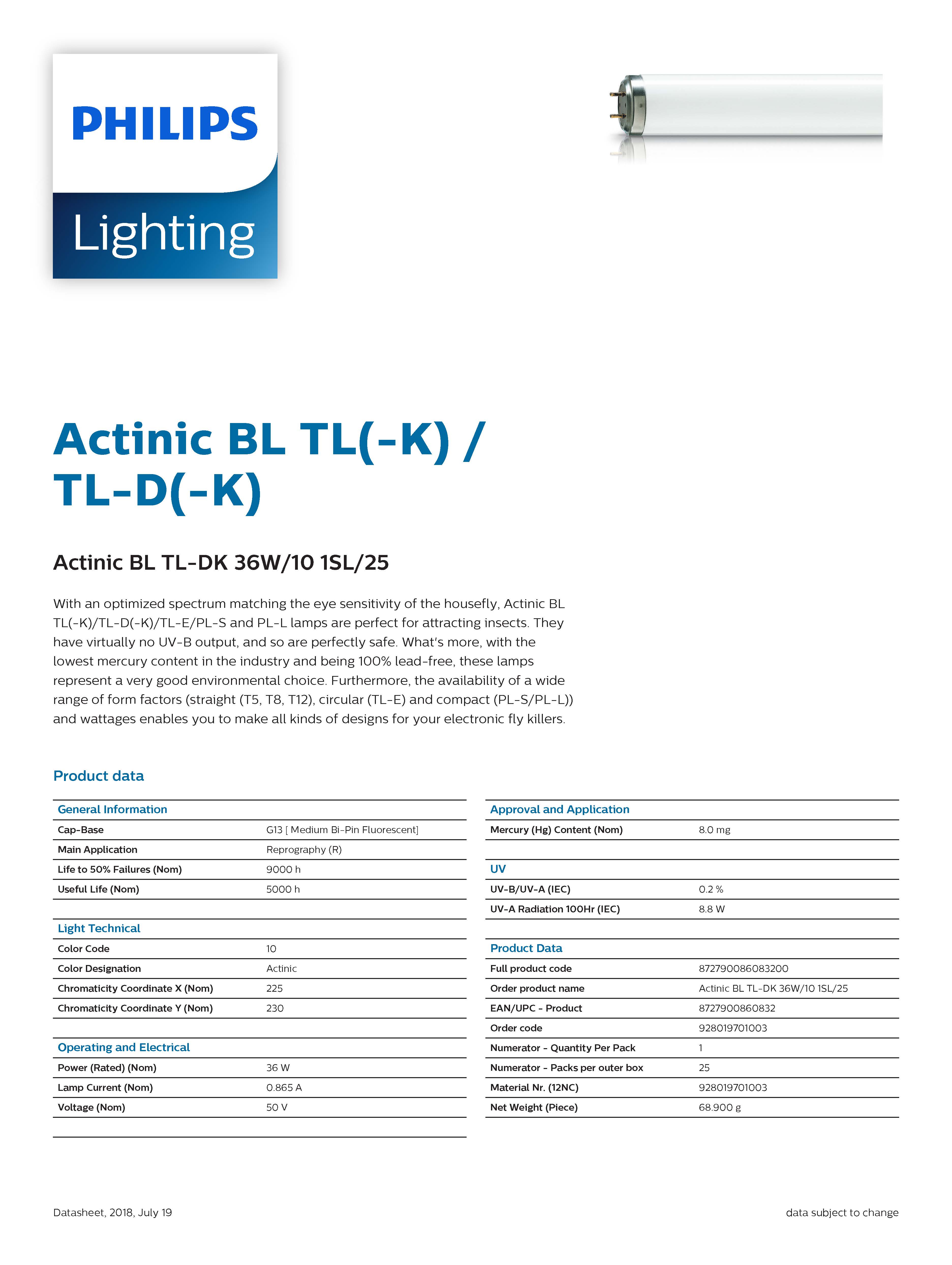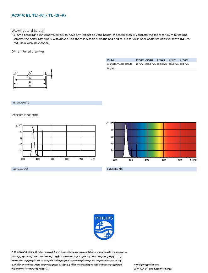 หลอดล่อแมลง Actinic BL TL-DK 36W/10 1SL/25 PHILIPS
